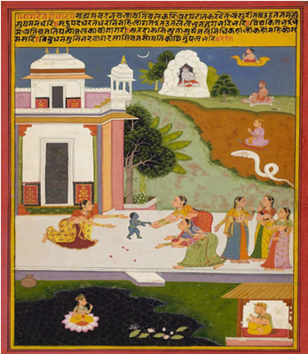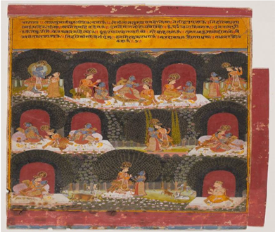 subject in depth. Sursagar’s subtle emotions, when expressed through the Mewar painting style, exemplify the interplay between visual art and literature. This research paper not only contributes to understanding Sursagar’s artists vision but also attempts to understand the process of dialogue between literature and painting which will prove benefical for future researchers and those concerned with this subject. Hindi: भारतीय चित्रकला