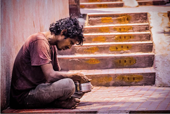 delves into the evocative image of a labourer sitting quietly in a corner of a