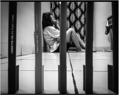 emotional distress on young girls. The photograph’s shadows symbolize the